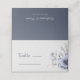 Se trata de una elegante tarjeta de boda azul polvoriento con flores color azul claro y azul marino. Es perfecto para una celebración de bodas de invierno con flores.