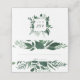 El diseño de la tarjeta botánica de moda de invierno incluye un borde superior e inferior de la vegetación acuática y hojas en ricos tonos de verde cazador. Espacio proporcionado para el nombre de invitado y el número de tabla. Las tarjetas se revierten para revelar un marco botánico coincidente con sus iniciales y fecha boda dentro. Diseñado para concordar con nuestro boda y colección de eventos Wild Forest para bodas de invierno o primavera elegantes.