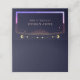 Mystical Rainbow Navy Blue Sun Moon Stars Astronomía Celestial Cosmic Space Boda Place Cards Escort Cards presenta un sol, luna y estrellas de color arcoiris con un fondo azul marino oscuro. Añada el nombre de invitado y el número de la tabla (ya sea manuscrito o utilice las etiquetas de pegatina coordinadoras en la parte delantera con el nombre de la novia, el novio y la fecha del boda al revés en la tipografía moderna de escritura de melocotón. Diseñado por Evco Studio. Ver www.zazzle.com/store/evcostudio para obtener más productos de esta colección
