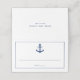 Tarjeta de plaza Boda plegada náutica con ancla azul marino con un monograma a cada lado rodeado por un borde. El interior es a la sombra de un azul marino y la parte trasera tiene los nombres y la fecha. Un diseño sencillo pero elegante, perfecto para una boda en la playa en verano.