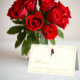 Elegancia intemporal: boda tradicional de rosas rojas minimalistas con tipografía de escritura dorada y fondo de marfil.