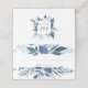 El diseño de la tarjeta botánica de moda de invierno presenta un borde superior e inferior de la vegetación acuática y hojas en tonos helados de azul. Espacio proporcionado para el nombre de invitado y el número de tabla. Las tarjetas se revierten para revelar un marco botánico coincidente con sus iniciales y fecha boda dentro. Diseñado para coincidir con nuestro boda de Wild Azure y con la colección de eventos.