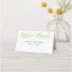 Esta bonita tarjeta plegable está adornada con ramas de laurel en tonos acuarelas de verde. Incluye espacio para el número de la tabla y el nombre del invitado en la parte delantera con el nombre de la novia y del novio y la fecha del boda en el reverso. Personalice su nombre y fecha de boda.