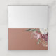 Esta hermosa tarjeta de boda de ramos floridos de terracota boho cuenta con bonito de melocotón, flores blancas y de ciruela, con una exuberante vegetación y una mesa escrita en una moderna y moderna tipografía de escritura.