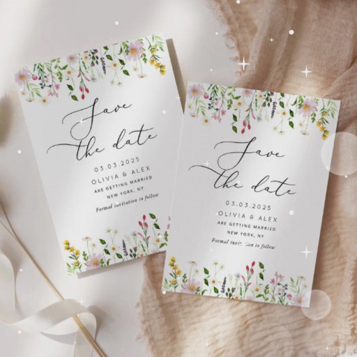 Flores silvestres boda en blanco colocar tarjetas de coincidencia artículos disponibles.