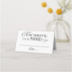 "Bebe y cásate" boda escolta / tarjeta de lugar en blanco (el color de fondo se puede personalizar) y esquema de color negro. Presenta una tipografía de estilo elegante y vintage y un diseño de acento de desplazamiento.