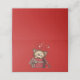 Box is wrapped in red, and a bow with a little hearts pattern.