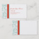 Hermosa Fiesta de Matrimonio Damasco Favorece. El diseño presenta un patrón floral rojo retro con un fondo azul verde azulado y blanco en el marco floral. Este diseño bonito y elegante es perfecto para bodas durante el verano. Personalizar de regalos de novias y favores matrimoniales! ¡Mira en mi tienda por productos a juego! Únete para invitaciones de primavera o de bodas de verano, bodas de otoño o otoño, o incluso para la ducha nupcial o nupcial. Utilice esta elegante tarjeta para una tarjeta de asiento o una mesa o para anunciar su negocio de planificadores de bodas, floristería o negocio de planificación de fiestas. También es bueno para diseñadores de interiores, diseñadores web o diseñadores de sitios web.