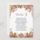 Elegante tarjeta de asiento de otoño, Encuentre su mesa Tarjeta de asiento de boda, con una ilustración de follaje otoñal dorado y rojo-marrón en estilo acuarela sobre fondo blanco.
