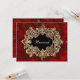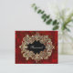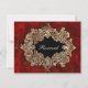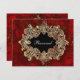 Gráficos elegantes de una tarjeta de mesa de fiesta de inspiración antigua, realizada en un rico rojo moteado, con un marco ovalado de encaje de tono dorado ornamentado para su texto. Personalice el texto en la parte frontal y posterior con números de mesa, nombres de invitados o simplemente déjelo como reservado. Ideal para cenas de gala o bodas.