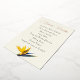 Tarjetas de estar con mesa de boda de pájaro del paraíso con Relieve metalizado de oro subió. Asista a los huéspedes por nombre de la tabla (o número) mostrando sus nombres en una sola tarjeta de asiento. Esta tarjeta de concha dorada tiene rosa de texto de Relieve metalizado para el título en la parte superior (o elegir Relieve metalizado de oro o plata). En el centro se imprimen los nombres de los clientes, con una flor amarilla de pájaro del paraíso en la parte inferior. El título puede ser el nombre de la flor o un número de tabla escrito.