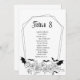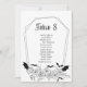 Fijar el tono para una celebración romántica y desconcertante con esta tarjeta gótica con número de mesa, con un arreglo dramático de rosa negro, murciélagos voladores y un marco de estilo lápida. Perfecto para los temas inspirados en otoño o Halloween, este diseño atrevido y humorístico ayuda a sus huéspedes a encontrar sus asientos en un estilo de moda espeluznante. Personalizable completo: personalice el número de tabla y la lista de invitados para que se ajuste a su evento.