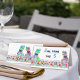 Bring dinosaur wedding fun to your table settings with these unique colorful bold psychedelic Jurassic T-Rex two grooms the perfect Jurassic gay wedding in a prehistoric wildflower meadow table place cards. Modern whimsical typography with room for your handwritten guests name and table number. Unique vibrant psychedelic Tyrannosaurus Rex 2 dinosaur grooms with watercolor wildflowers in blue purple pink red orange yellow and burgundy hues original artwork by artist Catherine Sweetman Ideal for the wedding day reception or rehearsal dinner. Matching wedding suite includes everything you will need on your fun wedding journey