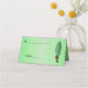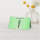 Esta tarjeta plegada de pie para tus fiestas, eventos y bodas es una mezcla de verde medio a verde claro en el centro con un hombre divertido con un gran pepinillo verde para una cabeza con una cara de aspecto sorprendente que lleva un traje marrón. Personalizar el nombre, el área de número de tabla y el texto de la parte posterior con las plantillas.