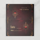 El maravilloso arte de la elegancia gótica. Diseño romántico con un motivo central de una vela ardiente dentro de un marco en forma de corazón. La vela está rodeada de ramas intrincadas, doradas y de arañas, y el corazón está adornado con joyas rojas. El fondo es un crimson profundo, y la imagen está enmarcada por rollos dorados ornamentados con acentos rojos goteantes. El ambiente general es de elegancia gótica y misterio.