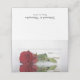 Estas elegantes tarjetas de lugar de boda están diseñadas para que puedas escribir en el nombre de cada invitado y su número de tabla. El diseño romántico se caracteriza por una bonita rosa roja de tallo largo que se ve reflejada en las olas y las ondas. La parte de atrás tiene los nombres de la pareja y la fecha de boda.