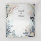 El diseño presenta una disposición suave y etérea de tonos azules en polvo y suaves de tierra con delicados follajes, bayas y flores que rodean los bordes. El marco está decorado con hojas de acuarela, flores de algodón y bayas oscuras, lo que le confiere un ambiente rústico y elegante. El área central se deja en blanco, ideal para los detalles de texto o evento, rodeado de formas orgánicas que evocan un ambiente sereno y otoñal. Este sofisticado motivo inspirado en la naturaleza funcionaría muy bien para una colección boda con un ambiente romántico y atemporal.