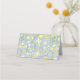 Moderno acuarela color amarillo, verde y blanco de flores botánicas silvestres en un fondo azul pálido para un fresco ambiente de verano. Coordinando las tarjetas en blanco para que escribas los nombres de tus invitados a mano.