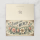 Con una hermosa imagen vintage de rosas florales con las palabras "JEHOVAH HAN MERCY". en un estilo de caligrafía vintage. Adentro está la oración, "Oh Señor Misericordioso, danos la gracia de confiar en Tu infinita misericordia. En tiempos de juicio y dolor, que encontremos refugio en Su corazón amoroso. Ten piedad de nosotros, guía nuestros pasos y mantenernos siempre cerca de Ti. Amén".