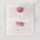 Tarjeta de lugar de boda romántica y hermosa que presenta flores rosadas y rosa polvoriento y algunas hojas verdes .