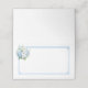 This folded name place card is shown in basic white with a lovely floral bouquet of hydrangeas and daisies and a classic dusty blue color border frame.
