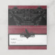 Transport your guests to a world of dark, enchanting elegance with our vintage gothic wedding place cards. The deep, aged burgundy wine background sets the stage for a striking contrast, as a bold white text emerges from a intricate black and gray outline. On the front and back of this design, a three-dimensional gothic filigree border with two black ravens captures the essence of mystery and romance. Unleash the magic and set the tone for an unforgettable wedding day. Created by Simply Farmhouse Press.