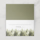 Esta tarjeta de lugar cuenta con pinos color agua verde y fuentes terrenas. Estas tarjetas de acompañamiento de nombre de huésped hacen la adición perfecta a su boda de invierno, rústico, montañés o forestal. Edite los tipos de letra, los colores de fondo, los colores de fuente y todos los términos para que coincidan con las necesidades del evento.