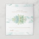 Elegante carta de acompañamiento con hermosos detalles de vegetación y delicado fondo acuático en una mezcla de azul polvoriento, turquesa, agua y suaves tonos verdes. Elementos modernos de caligrafía escrita a mano. Detalles del oro. Área de la parte posterior del texto. Parte de nuestra colección "Airy Blue and Green Watercolor" con una variedad de productos de coordinación disponibles.