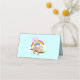 Tarjetas de lugar dobladas con un ilustracion con una graciosa pereza marrón que cae alegremente sobre una rama de árbol. Un arcoíris colorido detrás de él junto con un sol rosado sobrevolando la cabeza. Agradable, adorable y de moda.