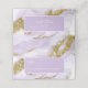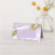 Este diseño a medida, con una tinta de alcohol abstracta en tonos de lavanda suave a violeta lila con acentos dorados brillantes, es perfecto para una boda romántica y elegante. La tarjeta de lugar de la tabla que se muestra aquí proporciona una plantilla para agregar fácilmente sus nombres, fecha de boda y mensaje a sus invitados. Buscar ID990 para ver otras piezas en este conjunto de bodas coordinado.