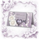Marco floral con corazón y rosas blancas - gótico romántico. Las rosas blancas y los pétalos dispersos adornan el marco, creando un ambiente romántico y delicado. En la parte inferior, un corazón decorativo con detalles delicados aporta un toque de elegancia. La paleta de colores está dominada por tonos blancos, violetas y grises.