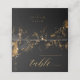 Un fondo abstracto que recuerda al mármol en tonos que van desde el gris carbón hasta el negro veteado con dorado brillante es el telón de fondo para textos con letra elegante y diseños modernos en las piezas de esta hermosa suite de boda. La tarjeta de lugar de la mesa de boda que se muestra aquí presenta lo anterior más texto opcional con letra fluida de 'mesa' y una plantilla para agregar sus nombres y fecha de boda en el reverso. Busque ID644 para ver todas las piezas coordinadas de este conjunto.