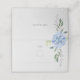 Una tarjeta azul horangea plegada floral, con fondo blanco roto en la parte delantera y en la parte trasera. Se ve elegante y moda en cualquier mesa. El número de la tabla debe colocarse dentro del pequeño círculo. Personaliza los nombres de la pareja en la parte posterior de la tarjeta para que sea la tuya.
