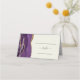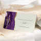 Esta elegante y moderna tarjeta de asiento reservada para una mesa boda cuenta con un borde de agate color morado adornado con un purpurina de imitación dorado sobre un fondo de marfil. La parte delantera de la tarjeta proporciona espacios para el nombre del invitado y el número de la tabla. La palabra "tabla" aparece en el guión de escritura a mano gris carbón con cambios antes y después. Personalizar la parte posterior de la tarjeta con los nombres de la novia y el novio en escritura a mano de carbón gris y la fecha del boda a continuación.