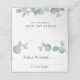 Las sorpresas de la vegetación eucaliptus acuarela resaltan esta moderna tarjeta plegada con sutiles elegancia. Este sencillo diseño inspirado en la naturaleza incluye una plantilla de texto que puede personalizar con el texto deseado tanto en la parte frontal como en la parte posterior de la tarjeta. Estas tarjetas de presentación son una buena elección para las recepciones de bodas y grandes fiestas o banquetes, así como para las reuniones más pequeñas en las que se desea un lugar agradable para cada uno de sus invitados. En este diseño hay una suite de productos de papelería a juego.