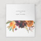 Rústica tarjeta de boda floral boho con un ramo floral de color acuático con tonos cálidos y terrenales de naranja quemado, terracota y burdeos profundos, además de vegetación. Esta elegante tarjeta plegada en blanco con los ricos tonos del otoño es ideal para una boda en otoño.