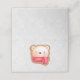 Colocar cartas con una cara de oso adorable y adorable sobre una base de galletas. Llevando una bufanda de rayas rojas y blancas. El fondo es un patrón que tiene el aspecto de caída de la nieve, en plata y blanco.