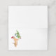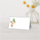 Un gatito naranja sostiene una masa verde eterna decorada con adornos navideños. Usa estas adorables tarjetas para guardar gatos en tu mesa de vacaciones.