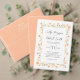 Esta tarjeta de boda, de color melocotón suave y delicados acentos florales de color acuático, sirve de guía a sus huéspedes con estilo. Perfecto para los asientos de la recepción, esta tarjeta de relleno ofrece espacio tanto para el número de la mesa como para el nombre, combinando diseño minimalista con un encanto elegante. Su distribución sencilla y minimalista le aporta un toque refinado a la configuración de la mesa, lo que le convierte en un detalle bonito y funcional para su día especial.