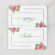 Esta elegante tarjeta para bodas cuenta con flores vibrantes de hibisco y exuberantes hojas de palma enmarcando un diseño clásico de números de tabla de guiones. El estilo tropical es perfecto para bodas en la playa, celebraciones de destino y eventos de verano. Personalízalo con nombres de huéspedes y asignación de mesas para que el toque final de la decoración de la recepción sea elegante.
