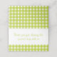 Bienvenido a tus amigos y familia con estilo con esta bonita tarjeta de bienvenida de gingham verde y blanca. Puede personalizar la tarjeta con un saludo especial de agradecimiento, sus nombres o una cita favorita. Green and white gingham gracias tarjeta de acompañamiento es perfecta para * bodas de playa y náuticos / duchas de novias / fiestas * etiquetas de presentación de comida * eventos de negocios * ceremonias de premiación y banquetes * fiestas de vacaciones * recaudadores de fondos y organizaciones de beneficencia. POR FAVOR, DESPLAZARSE PARA VER LOS PRODUCTOS DE AMOR QUE PODRÍAS DISFRUTAR.