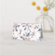 Tarjeta de lugar plegado con un elegante patrón hecho con un ilustracion acuarela de flores rosadas con hojas y tallos azul-grises.