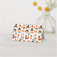 Colocar tarjetas con un patrón estacional de Acción de Gracias. Con peregrinos extravagantes, pavos, tarta de calabaza y otros elementos temáticos de otoño.