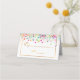 Tarjetas de lugar con letra manuscrita dorada falsa acentuadas con confeti de arcoíris deslumbrantes de PixDezines. Todos los elementos son ajustables y removibles.