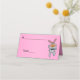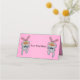 Esta tarjeta plegada de pie para tus fiestas, eventos y bodas es rosa vibrante con un lindo conejo blanco dando un pulgar hacia arriba y usando una corbata de arco negro. Personalizar el nombre, el área de número de tabla y el texto de la parte posterior con las plantillas.