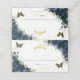Diseñado para coordinar con nuestra colección de cumpleaños Quinceañera Azul Marino Floral, esta tarjeta de lugar elegante presenta flores de acuarela azules marino, mariposas azules marino y doradas y una corona de princesa dorada. (c) The Happy Cat Studio