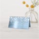 Puede cambiar el color negro de las líneas y la etiqueta de texto en la parte delantera de estas tarjetas de lugar. Se utiliza un tipo de letra simple y moderno y una caligrafía elegante, pero también se puede personalizar el color y el estilo. Purpurina azul claro falso y arte digital de Relieve metalizado de estilo metálico, con gráficos de brillo blanco en tarjetas de lugar plegadas para tu boda moderno.