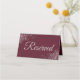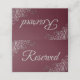 Estas elegantes tarjetas están diseñadas para que sus huéspedes sepan qué asientos están reservados para la familia y otros huéspedes especiales. Tienen un fondo de color burdeos o marrón con acentos florales de Relieve metalizado de color plateado adornados con adornos florales en las esquinas y letras grises que dicen "reservadas". Perfecto para bodas o cualquier otra ocasión especial.