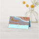 Este conjunto de diseño boda, con su patrón abstracto de ondas fluyentes y venas de oro brillante, trae a la mente llamativas formaciones rocosas y paisajes del suroeste. Una colorida paleta en tonos rojizos y terracota a través del azul cielo se añaden al conjunto. La tarjeta de lugar de tabla que se muestra aquí tiene todo lo anterior sobre un fondo azul cielo con una plantilla para añadir fácilmente sus iniciales y fecha de boda. Busque ID903 para ver otras opciones de color y piezas de coordinación para esta colección de bodas única.