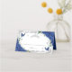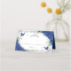Diseñado para coordinar con nuestra colección de cumpleaños de la Princesa Floral Real Azul Quinceañera, esta tarjeta de lugar elegante cuenta con vibrante floral real azul acuarela, mariposas azules reales y una corona de princesa de plata. (c) The Happy Cat Studio